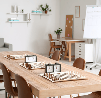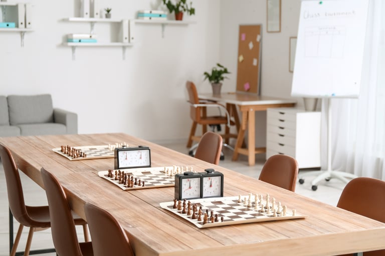 Boards, pieces & chess clocks provided